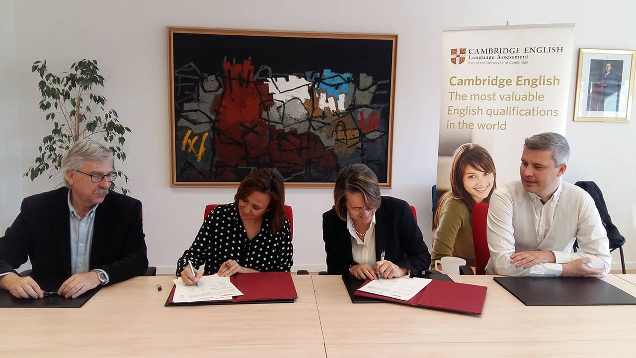El día 1 de marzo de 2017 la consejera de Educación del Gobierno de AragónMaría Teresa Pérez, y Elaine Blausdirectora regional de Cambridge English Language Assessment España y Portugal, firmaron la renovación del convenio de colaboración que, desde el año 2013, facilita que los alumnos y profesores aragoneses puedan realizar los exámenes oficiales de Cambridge English y obtener una certificación internacional de su nivel de inglés.